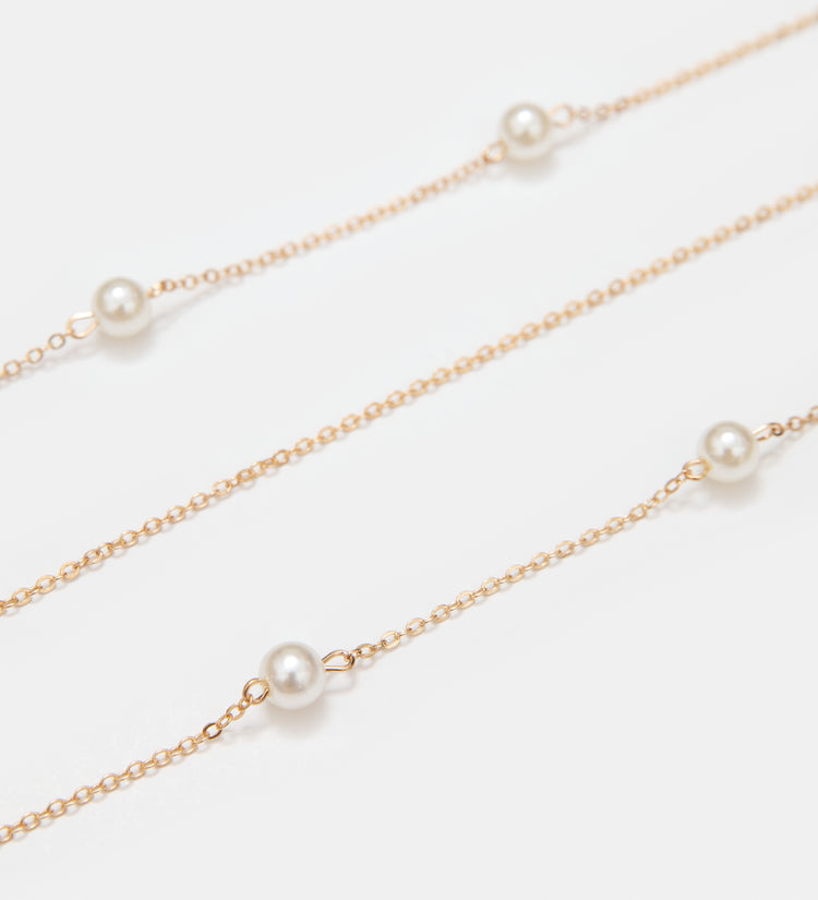 Mira Chain kombinerer tidløs eleganse med hverdagsfunksjonalitet. Håndlaget av delikate gulllenker fremhevet av skinnende perlekuler, gir den et raffinert preg til brillene dine. Justerbare silikonløkker sikrer en sikker og komfortabel passform på enhver innfatning, og tilbyr både stil og praktisk funksjonalitet.